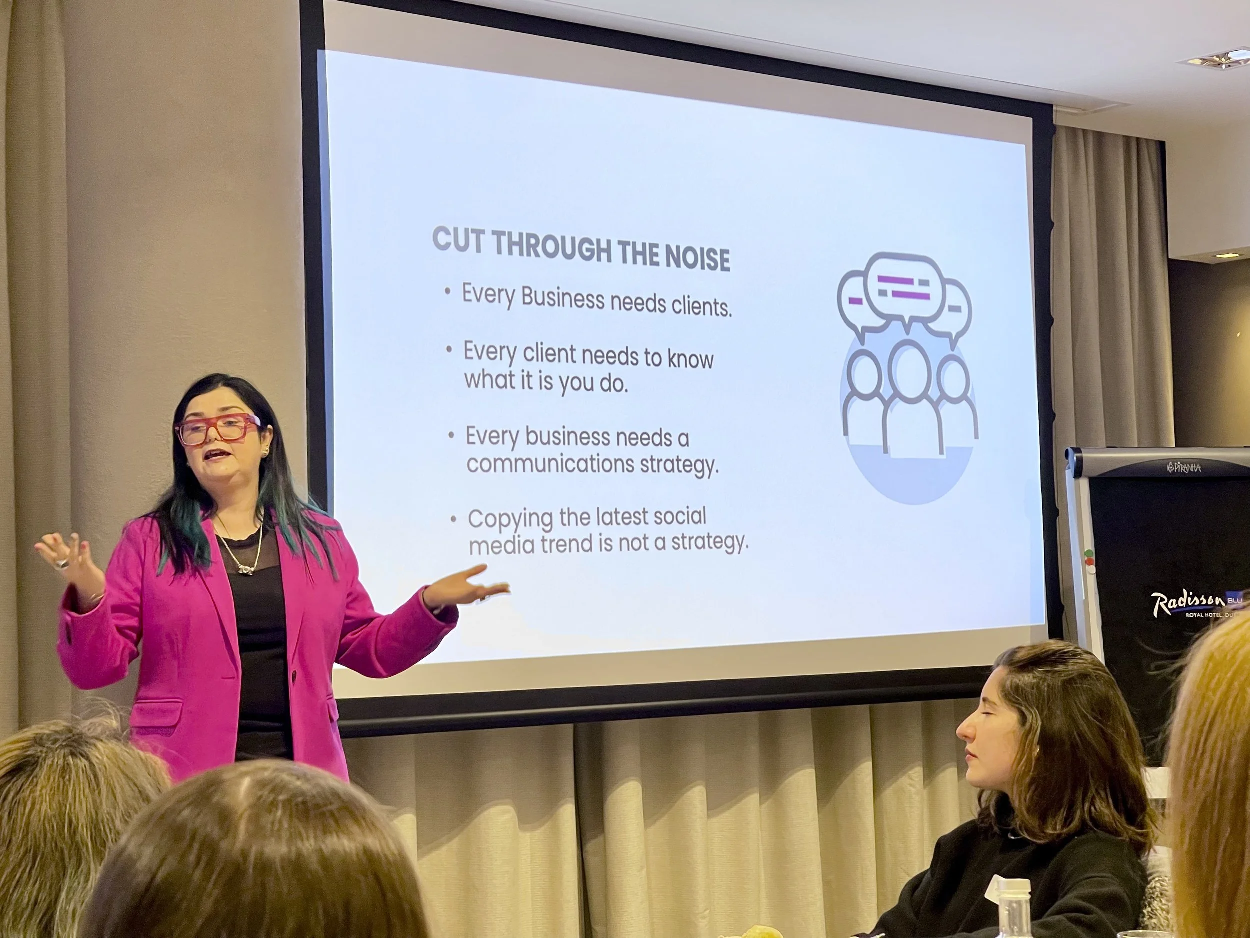 In two separate events last week, I had the opportunity to deliver the "Cut Through the Noise" talks, each focusing on harnessing the power of media to elevate brand visibility. The first talk was presented to over 50 members of The Dublin City LEO’s Women’s Network, and the second to the Professional Speakers Association Ireland. Both sessions emphasised the necessity of standing out in a sea of sameness. In a competitive media world where attention is fleeting, the key message was clear: mastering media communication is about making a memorable impact. These talks provided actionable insights for transforming a brand's narrative to resonate strongly in today's crowded media landscape.